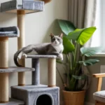 - Áreas Verticais: Invista em “árvores para gatos” altas e estáveis, prateleiras de parede e redes de janela. Isso não apenas duplica o espaço útil, mas também permite que eles se observem à distância e estabeleçam uma hierarquia sem confrontos diretos. Um gato em um ponto mais alto geralmente se sente mais seguro e no controle.